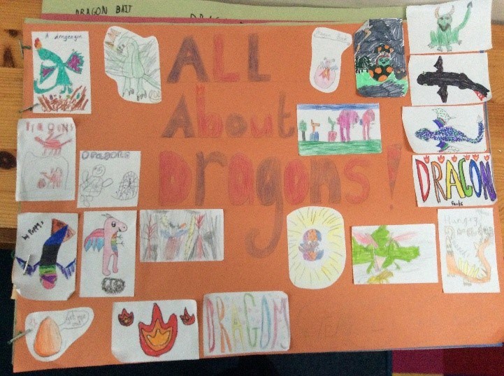 In year 4, we have been looking at non-fiction texts and identifying the key features. We then planned our own non-chronological report about dragons, using subheadings so the reader can easily find the information they need. Elizabeth said, “We spent a couple of weeks planning and writing out our first draft of our text. We then wrote our final version on lined paper, cut them out and arranged them on big sheets of paper. We added our own pictures of dragons too”. Kiran added, “When everyone had their final piece, we stapled them together to make a giant dragon non-fiction book”. Our book is available in our library for any dragon enthusiasts to read.